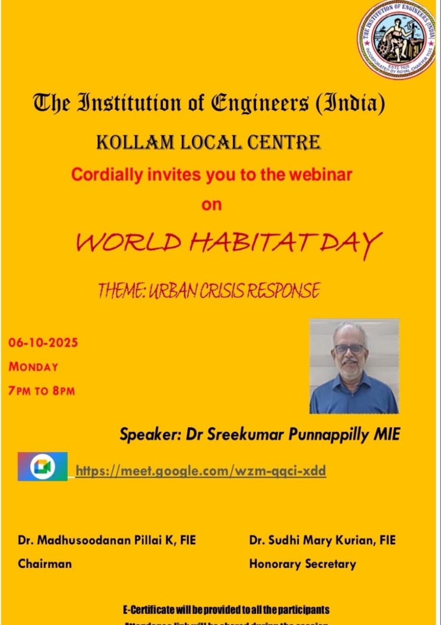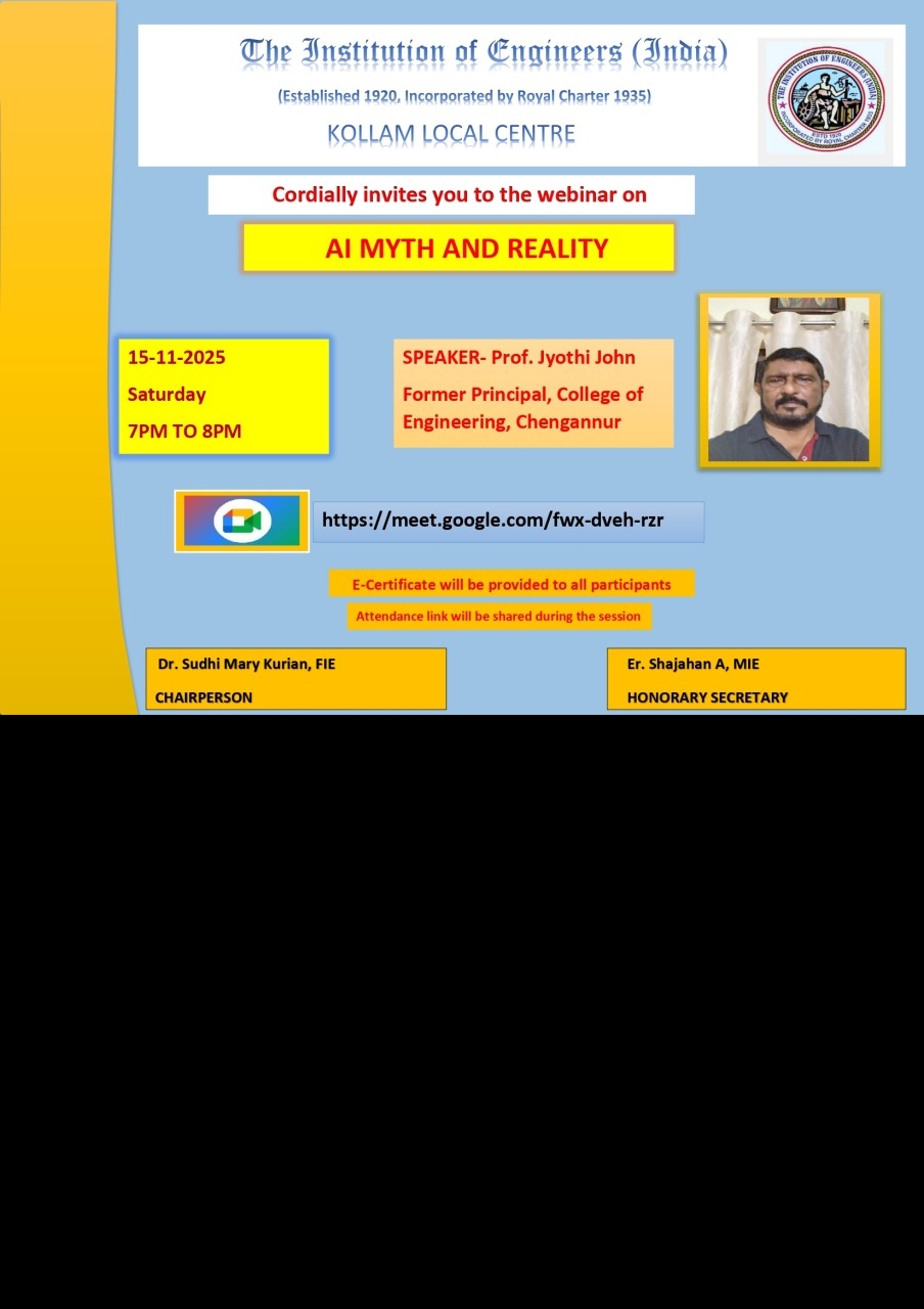 The Kollam Local Centre of IEl was established in 2010, housed in the campus of TKM College of Engineering, Kollam. At present, 1757 members attached to this centre and it covers the districts of Kollam, Pathanamthitta and Alappuzha.